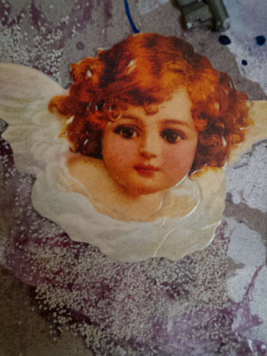 Enkelisuklaarasian enkelihän se siinä, mannaryynejen päälle liimattuna.